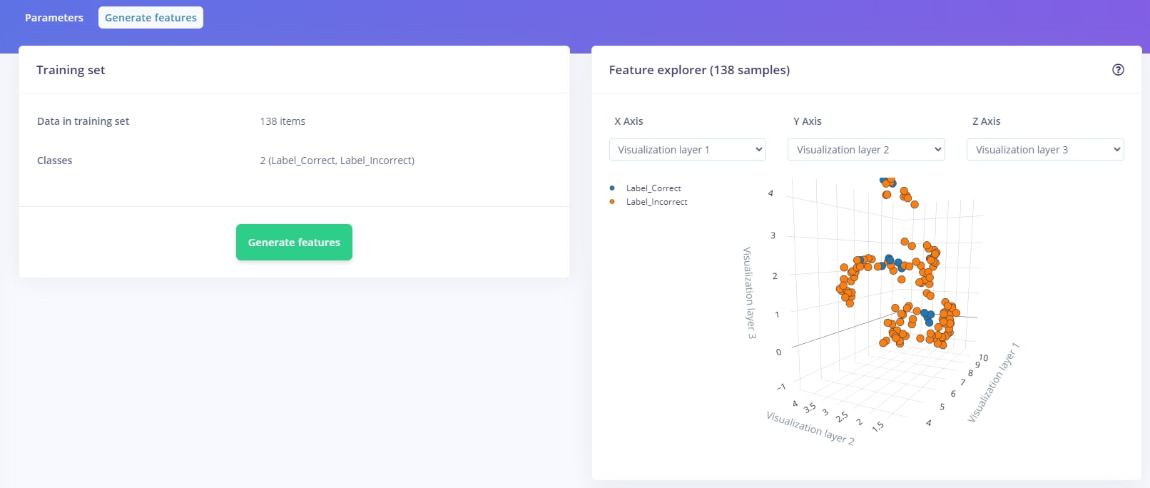 We can then train the model, by generating the features and training the impulse (Figure 32).