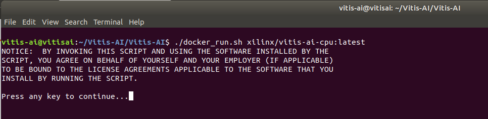 ./docker_runs.sh Xilinx/vitis-ai-cpu:latest