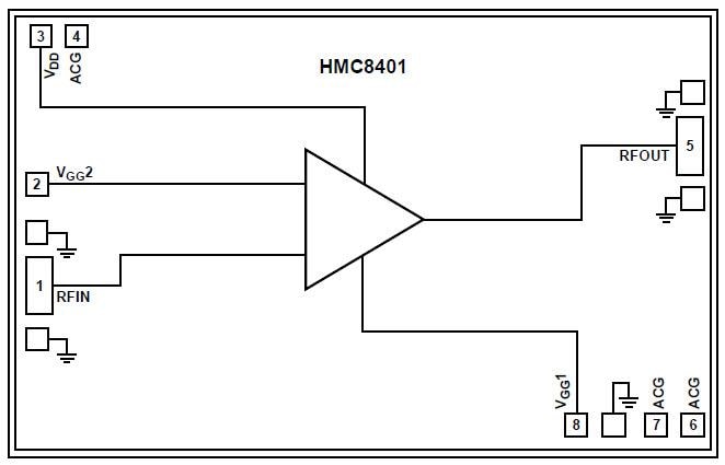 • Saturated output power (PSAT)HMC8401: 19Bm (typical)