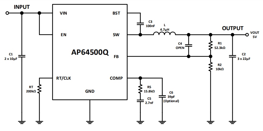Diodes Incorporated AP6450xQ开关稳压器是40V、5A、高效同步直流-直流降压转换器,符合AEC-Q100 1级标准。这些稳压器完全集成了 45mΩ高侧功率MOSFET和20mΩ低侧功率MOSFET, 可提供高效率降压直流-直流转换。这些AP6450xQ稳压器采用特殊的栅极驱动/自举设计,使其能够在LDO模式下工作,占空比接近100%。该稳压器进入脉冲频率调制 (PFM) 模式,并在负载电流接近零时自动提高效率。由于采用峰值电流模式控制,AP6450xQ稳压器最大限度地减少了外部元件数量,因此十分简单易用。AP64500Q和AP64502Q稳压器具有高达2.2MHz可编程开关频率,也可与外部时钟同步。AP64501Q的标称开关频率为570kHz。AP64501Q和AP64502Q稳压器具有可编程软启动功能,可降低浪涌电流,而AP64500Q和AP64501Q具有外部补偿功能,可优化环路响应。这些开关稳压器采用频率扩频 (FSS),开关频率抖动为±6%。这样即可通过不允许发射的能量在任何一个频率中保持相当长的一段时间来降低EMI。这些AP6450xQ开关稳压器采用SO-8EP封装。AP6450xQ稳压器非常适合用于汽车设备,例如电源系统、信息娱乐、仪表板、远程信息处理和照明控制。