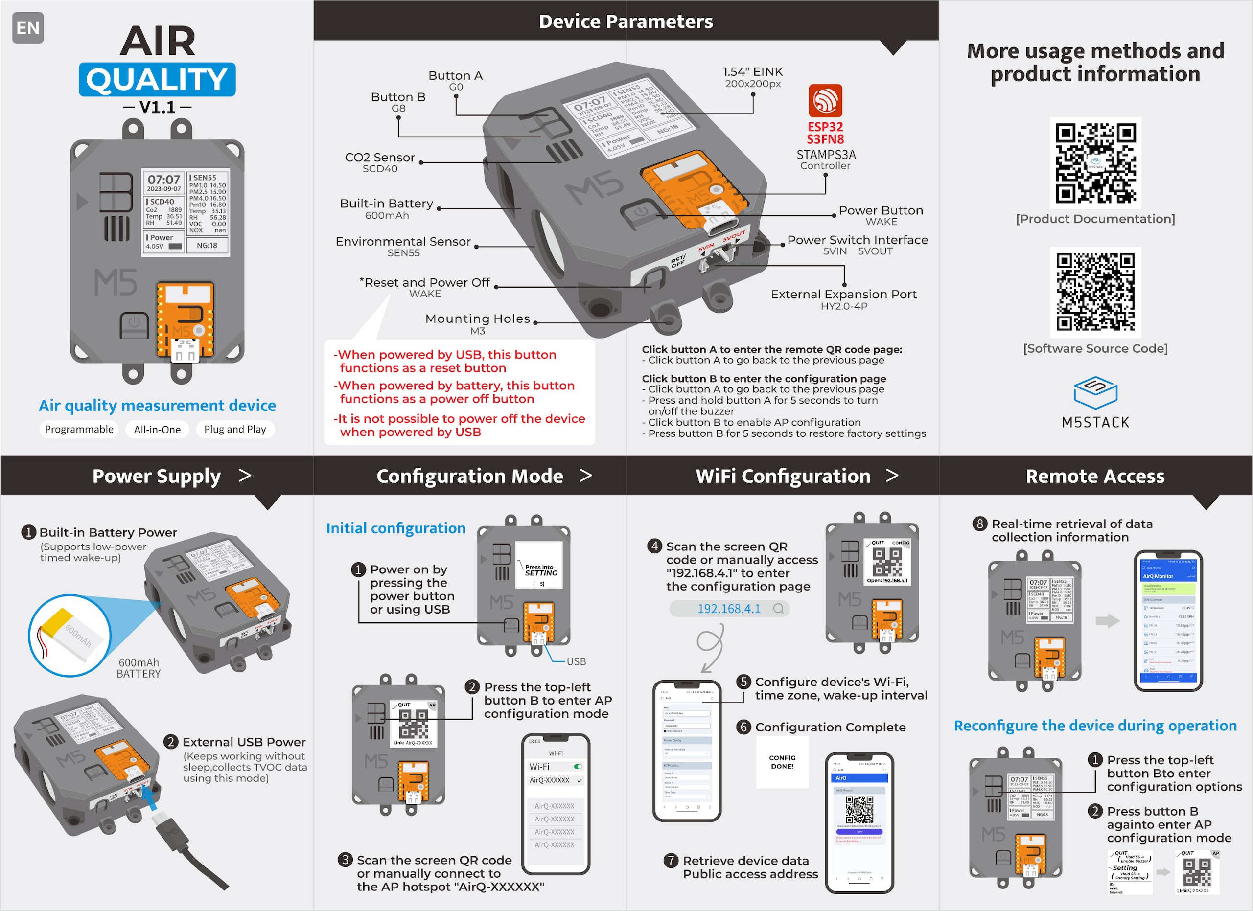 Infographic - M5Stack Air Quality Kit v1.1 with Stamp-S3A (M5StampS3A)