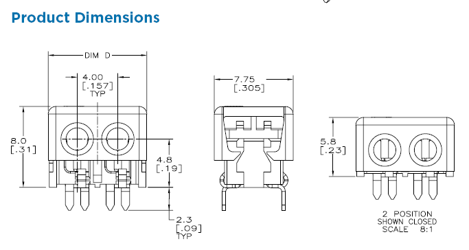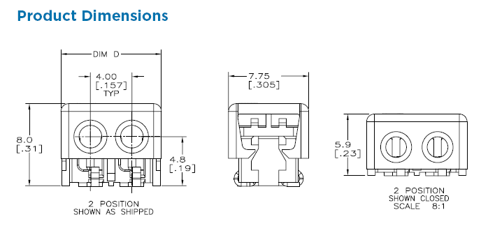 | 2位,20 AWG通孔闭端,蓝色 | 571-1-2106489-2 |