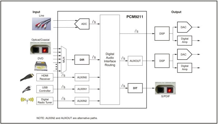 Texas Instruments PCM9211 音频接口收发器是现今多媒体播放器和录音机的完备的模拟和数字前端产品。 TI PCM9211 结合了 1 个立体声模数转换器,及S/PDIF 收发器,配有 12 个多路复用输入和 3x PCM 输入,能使其他音频接收器与模拟及 S/PDIF 的信号复用于 1 个数字信号处理器中。 这些TI 音频接口收发器专用于家庭影院、AVR (稳压器)设备、电视和声霸音响、高性能声卡等等。